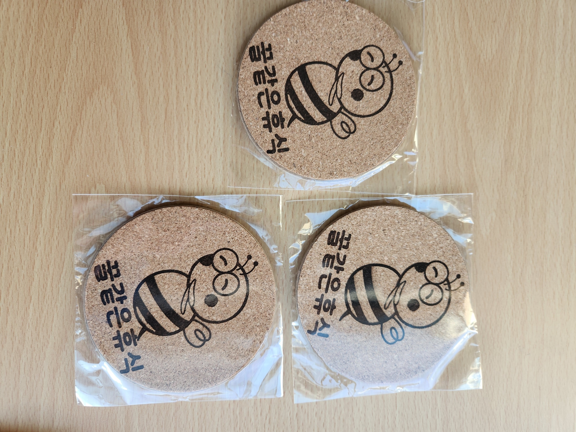 ハングル文字を入れたコルクコースター