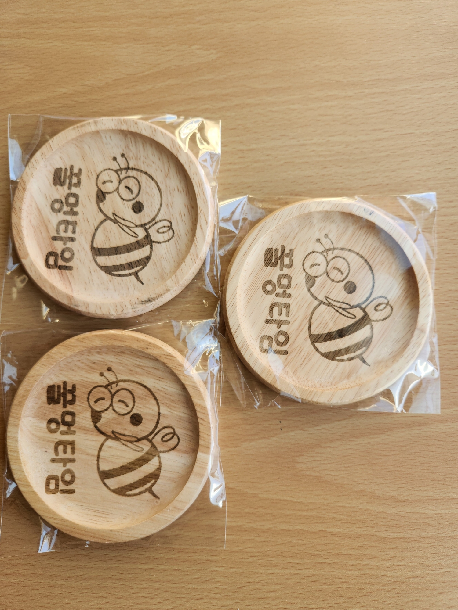 ハングル文字を入れた木製コースター
